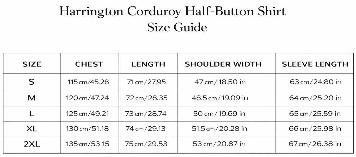 The Harrington Corduroy Half-Button Shirt is a refined essential for relaxed autumn styling. Made from soft, textured corduroy, it delivers comfortable warmth with a naturally relaxed fit.